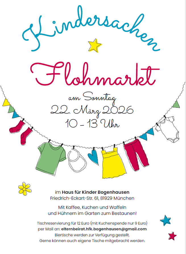 Im Haus für Kinder Bogenhausen werden 24 Krippen-, 50 Kindergarten-, und 25 Hortkinder betreut. Innerhalb des Hauses bilden Krippe, Kindergarten und Hort eine Einheit. Die Räume und der Garten sind so gestaltet, dass sie zur Verwirklichung kreativer Ideen anregen und viel Platz zum Spielen, Toben und Bewegen bieten. Die Kinder können zu bestimmten Zeiten des Tages ihre Aktivitäten im Haus oder Garten entsprechend Ihren Interessen und Fähigkeiten frei wählen.